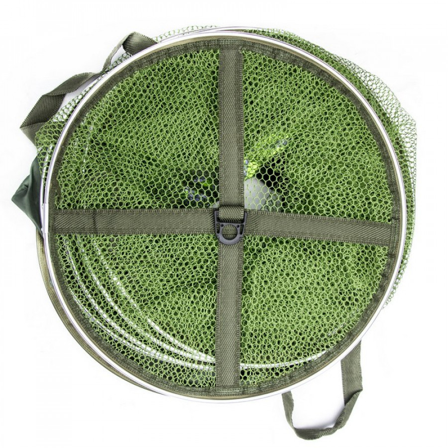 Отличный садок, плотная ткань надежный каркас! Для ловли с дамбы или крутого берега самое то.