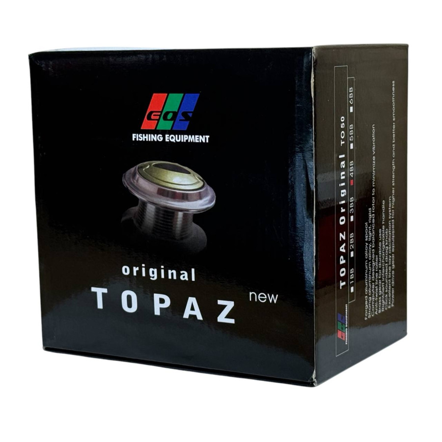EOS Topaz TO50 4 ball — это универсальная безынерционная катушка, которая подходит для различных видов ловли. Её конструкция обеспечивает плавный ход и надёжность, что делает её отличным выбором для рыбаков, ценящих качество и доступность. Корпус выполнен из карбопласта, что делает модель лёгкой и прочной.
