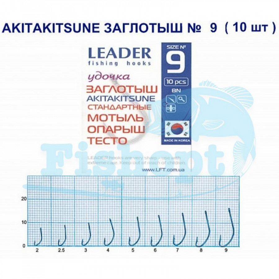 Описание Крючок Leader AKITAKITSUNE Заглотыш TIN (Мотыль, опарыш, тесто) №9 купить в Харькове ...