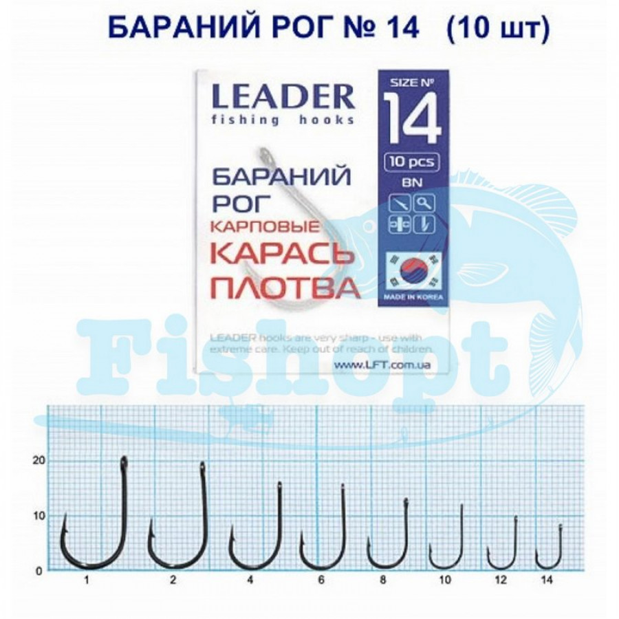 Описание Крючок Leader Бараний Рог карповые (карась, карп,толстолоб) № 14 купить в Харькове ...