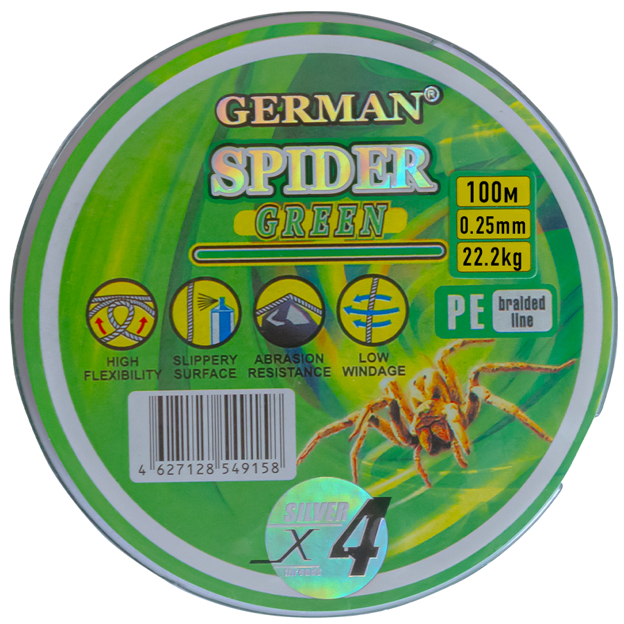 Шнур German Spider Green X4 (темно-зеленый) 0.25mm 100m 22.2kg