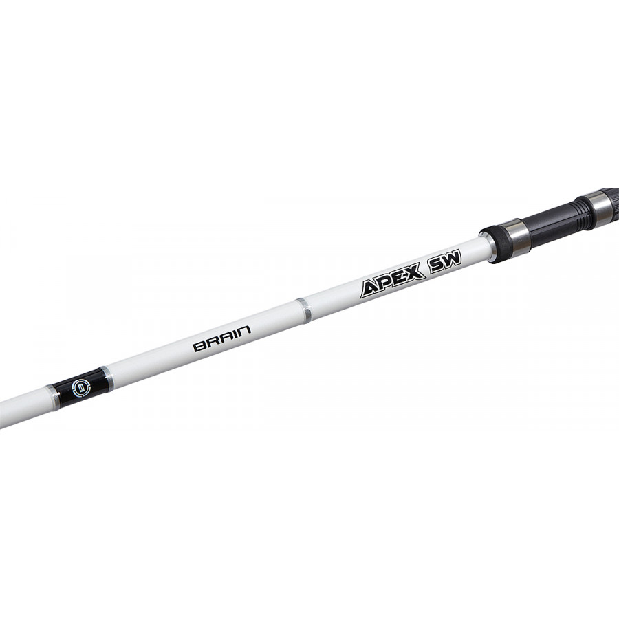 Удилище серфовое Brain Apex SW применяется для береговой ловли в солёной воде. Основное внимание производителя было уделено дальнобойности - способности забрасывать оснастку на большое расстояние. В отличие от классических сёрфовых удилищ, Apex SW имеет максимально тонкий бланк, который позволяет облегчить выполнение сверхдальних забросов тяжёлых монтажей. Таких характеристик удалось достичь благодаря использованию карбонового материала, скомпонованного с определённой толщиной и конусностью. На удилище установлены усиленные противозахлёстные кольца с облегчёнными вставками, которые не нагружают бланк и способствуют свободному вылету лески. Благодаря инновационной схеме их расположения, леска легко слетает со шпули катушки, встречая минимальное сопротивление в кольцах. Надёжный катушкодержатель винтового типа гарантирует надёжную фиксацию катушки даже при самых высоких нагрузках. Для обеспечения удобного и широкого хвата удилища во время заброса, его ручка имеет увеличенную длину и оснащена рукояткой из EVA, которая не скользит в руке.